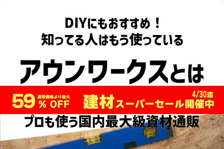 (最大59%off 建材スーパーセール開催中4/30迄)「アウンワークス」とは!プロも選ぶ!DIYに個人利用可能な、国内最大級建材通販